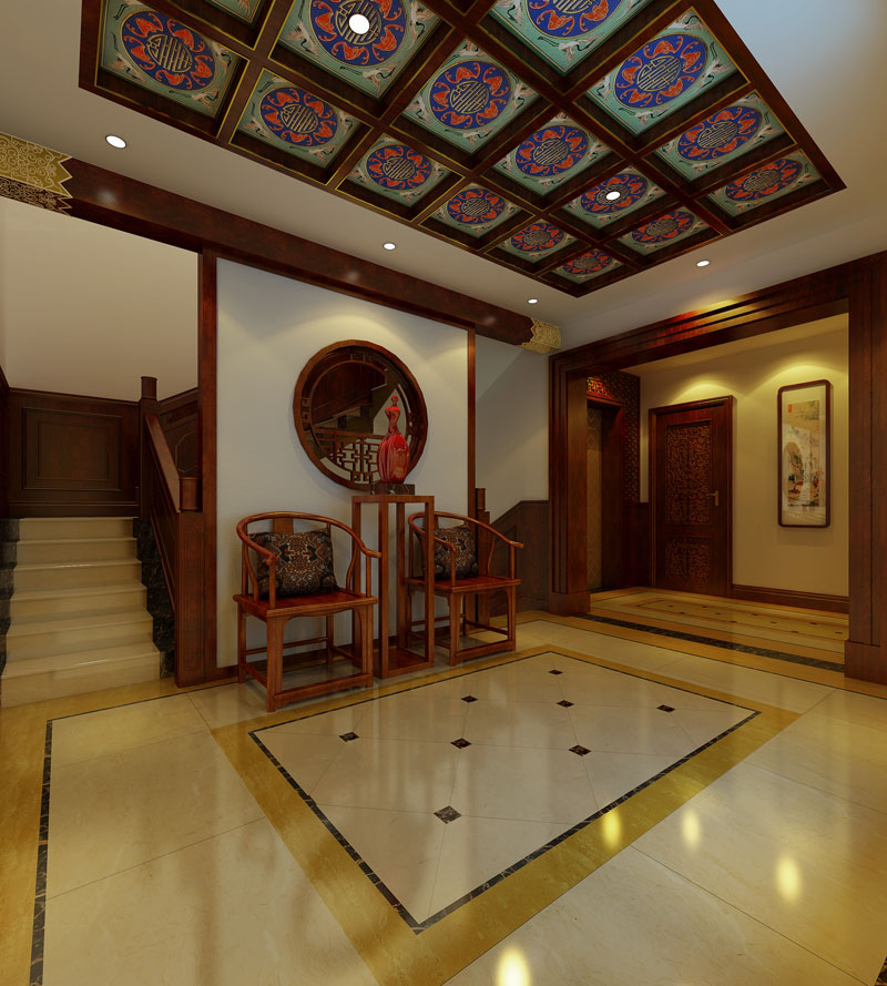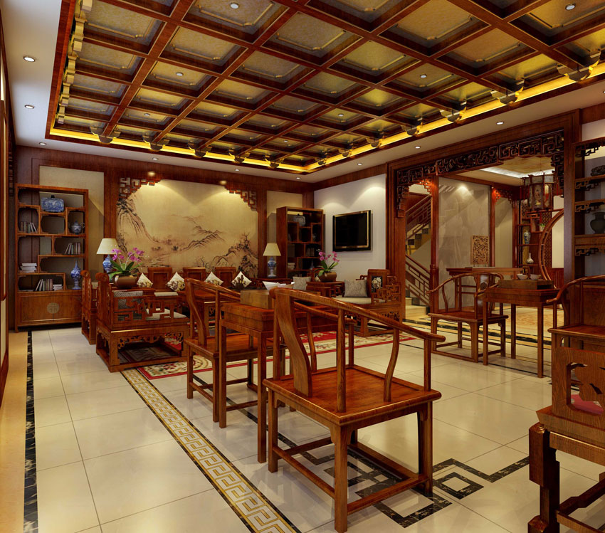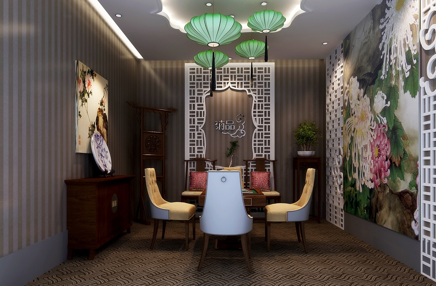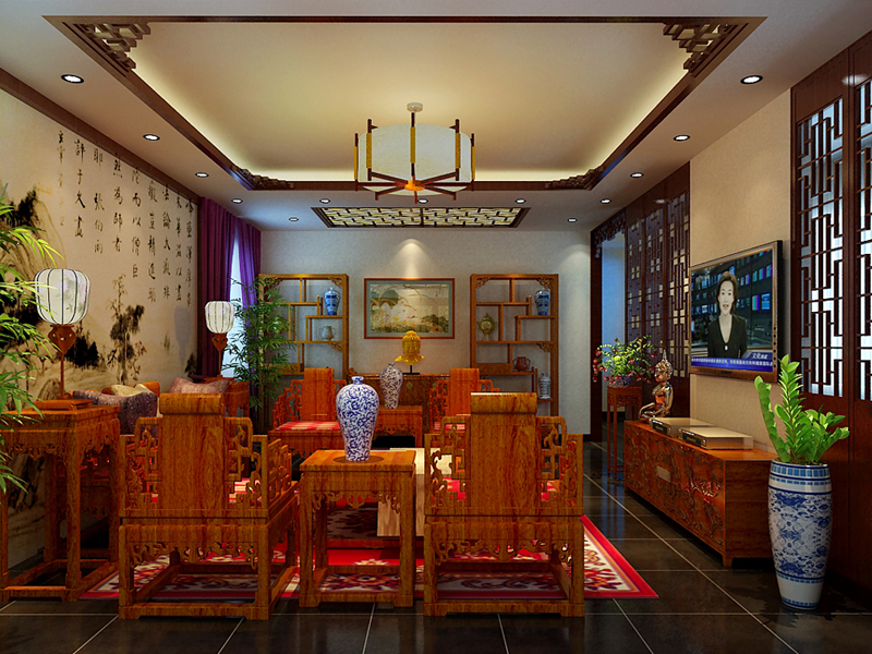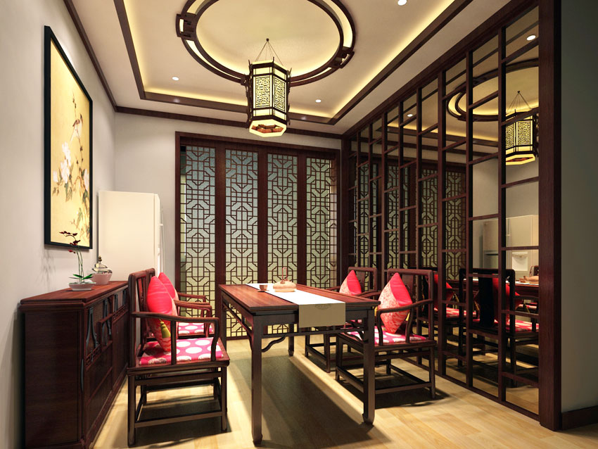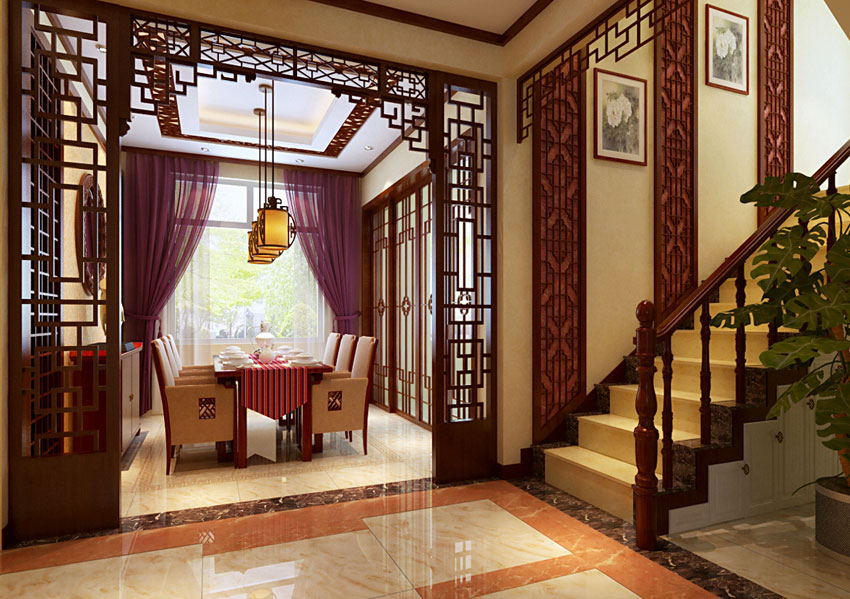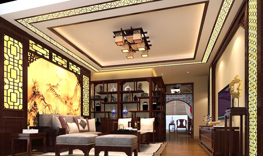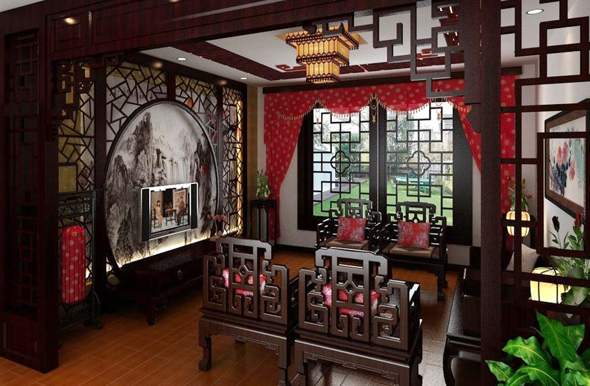 中式仿古吊頂花格裝置過程1預埋在擬裝置的墻梁上預埋鐵件或凹槽。