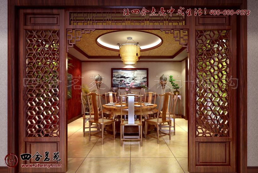 中式別墅裝修運用古典元素在不同空間的合理規(guī)劃下,呈現(xiàn)出“精巧合宜、巧而得體”的藝術(shù)魅力。在諸多裝飾元素的運用下中式以清新疏朗的面貌給人帶來中式餐廳裝修享受。