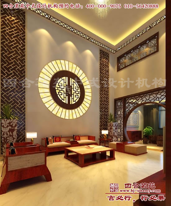 這座中式別墅裝修總面積近800平方米,四合茗苑設(shè)計公司在整體設(shè)計上采用的是樓中樓結(jié)構(gòu),高空間、大進(jìn)深,氣勢頗為弘大。別墅客廳是裝修設(shè)計中的重中之重,其從根本上奠定了整體別墅的基調(diào)和風(fēng)格,也是給人的第一印象。這所別墅的客廳設(shè)計融入了常用的幾大中式元素,包括中式木條,青花瓷碗,簡約紅木家具,這就從整體上奠定了別墅優(yōu)雅中式風(fēng)格基調(diào)。