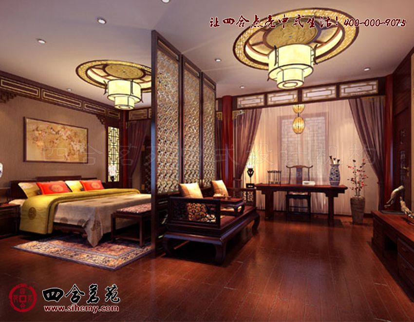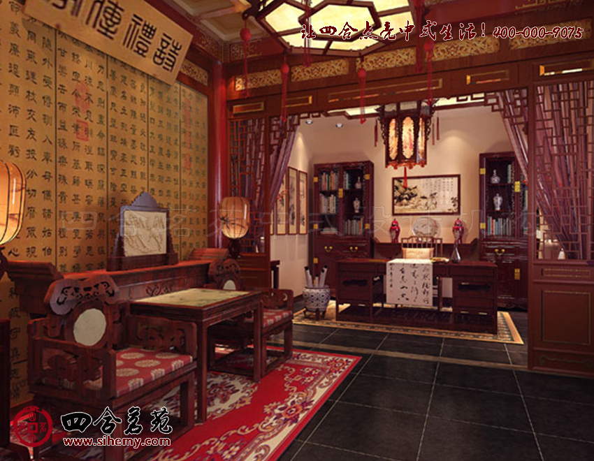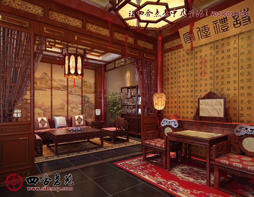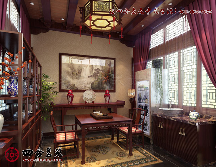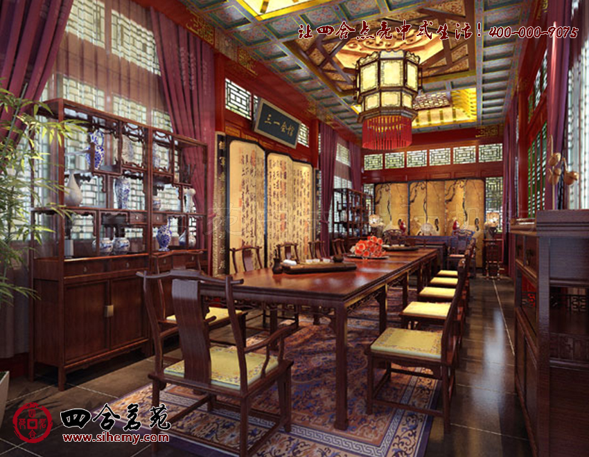 不僅力求從色彩上顯著古韻,同時(shí)融入花格、花幾、花燈,