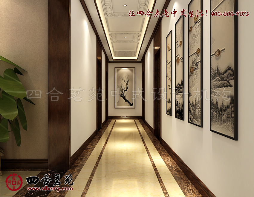 壁飾以筆鋒雋秀的中式圖畫為題,狹長空間中點(diǎn)綴裝飾,帶給人更多詩情畫意的視覺印象。