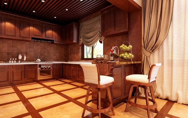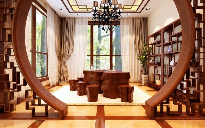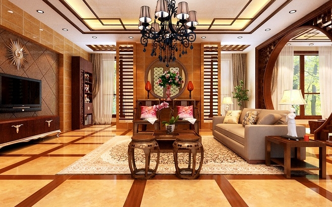 盡管目前人們大都居住在西式的高樓大廈里,但歷史悠遠(yuǎn)的中式家居風(fēng)格仍獲得了很多人的青睞。一種“新中式”的裝飾風(fēng)格逐漸出現(xiàn),并率先在中高檔家庭裝修中占領(lǐng)了一席之地。我們仔細(xì)分析研究了諸多傳統(tǒng)的中式元素,并將之運(yùn)用于歐式的硬裝設(shè)計的比例原則中。在門窗套線以及護(hù)墻板的設(shè)計中,我們重新研究并總結(jié)了中國傳統(tǒng)建筑設(shè)計中的裝飾元素,并將之變形重新運(yùn)用。另外,在地面石材的設(shè)計上,我們將中式傳統(tǒng)梁架彩繪圖案進(jìn)行變化,運(yùn)用石材水刀切割技術(shù)將之鋪貼于重要空間的地面,從而產(chǎn)生一種極具富貴氣質(zhì)的震撼效果。