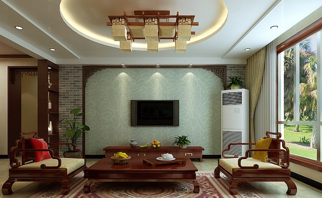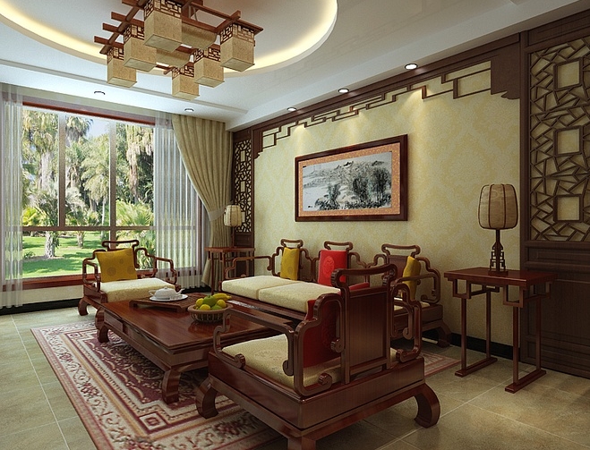 在功能方面,客廳是家居的重要場所,因?yàn)檫@將會(huì)是主人的身份和地位象征,也是家庭活動(dòng)和社交的重要場所,所以在本設(shè)計(jì)中我們很有必要著重設(shè)計(jì)和突出我們的客廳。運(yùn)用大量的中式元素,從天花到地面、從電視背景墻再到沙發(fā)背景墻、再到家具,無處不體現(xiàn)著主人的品味無處不體現(xiàn)著別致的中式風(fēng)格。