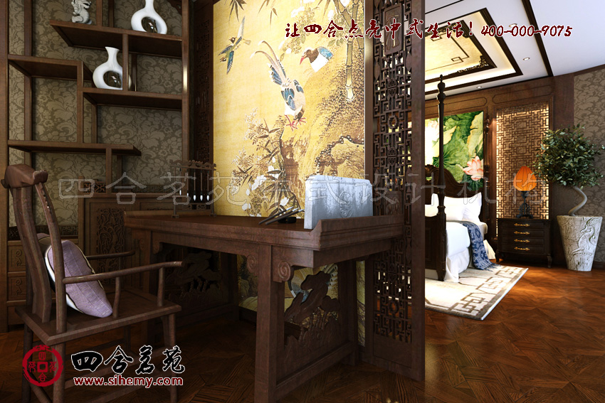 不同的結(jié)構(gòu)鑄就空間獨(dú)特性,稟賦高雅的中式元素與文采畫(huà)稟高超的中式工筆畫(huà)巧妙融合,依托配飾中雜糅西洋元素的高端別墅設(shè)計(jì)裝修理念,中西合璧的別墅給人們帶來(lái)豐富的藝術(shù)享受,這樣的比例關(guān)系和空間主題營(yíng)造加上中、西合璧的獨(dú)特理念也讓此案設(shè)計(jì)得到四合茗苑中式設(shè)計(jì)機(jī)構(gòu)諸多設(shè)計(jì)師的廣泛贊許。