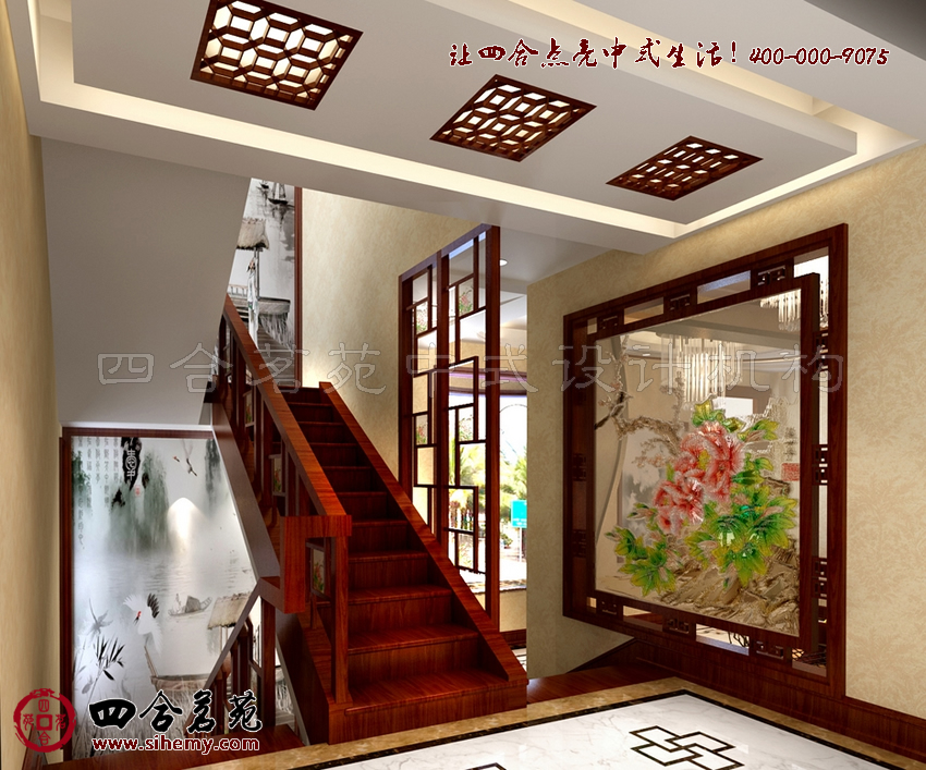 別墅裝修公共空間,展現(xiàn)了新中式別墅設計,全然提升享受的設計理念,依托傳統(tǒng)工藝中精品的刺繡、施釉磚,以及水墨丹青等營造公共空間具有文墨蘊含的設計過渡。“雋永丹青、工筆畫、施釉磚”,裝飾梁等中式元素共同組建了別墅公共區(qū)域精品裝飾享受。