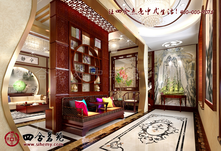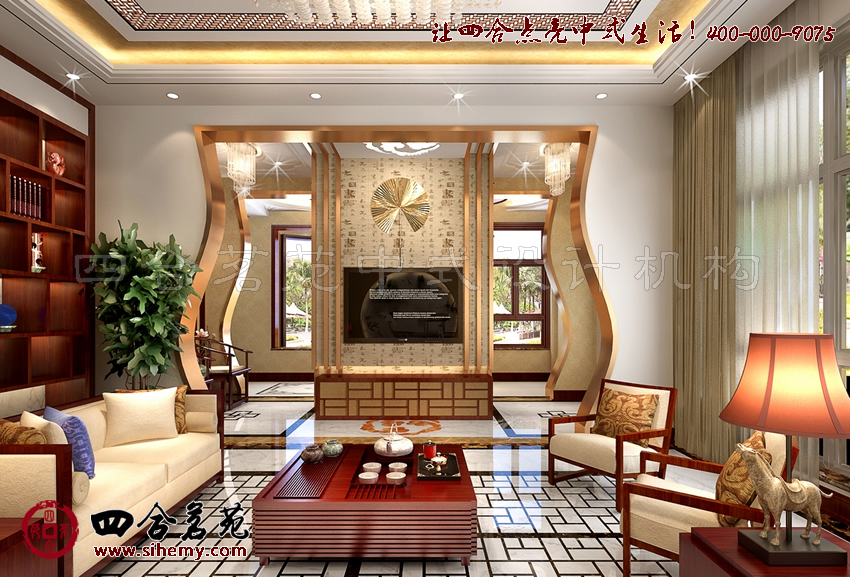 古典裝飾透過(guò)經(jīng)典裝飾元素與富有現(xiàn)代質(zhì)感的材質(zhì)加以表現(xiàn),將以古今融合的方式打破傳統(tǒng)與現(xiàn)代的界分。線(xiàn)條與幾何圖形的組合也體現(xiàn)著古今的融合。新中式最新別墅設(shè)計(jì)逐漸成為體驗(yàn)中式古典藝術(shù)魅力的一種渠道。別墅設(shè)計(jì)大廳中古雅的蘇州園林中的寶瓶洞門(mén)以金屬光澤的材質(zhì)點(diǎn)染,圍合成形態(tài)和質(zhì)感上均卓然超凡的視覺(jué)體驗(yàn)。