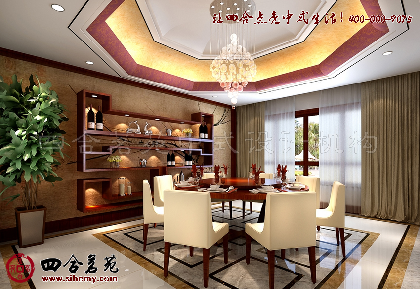 餐廳中中式元素示意性的點(diǎn)題,在玻璃彩繪與宮燈之間呈現(xiàn)出中式古韻。別墅裝修運(yùn)用中西合璧的方式表達(dá),施釉磚的西洋線(xiàn)條配合八角形的燈池,讓人從集合線(xiàn)條和裝修形態(tài)的構(gòu)成上感受中西結(jié)合。