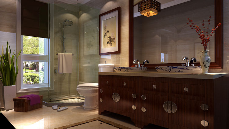 別墅設(shè)計(jì)裝修衛(wèi)生間,設(shè)計(jì)裝修充滿(mǎn)智慧的借景,借助現(xiàn)代科技,在別墅衛(wèi)生間中點(diǎn)綴裝飾,滿(mǎn)足衛(wèi)生間空間功能和美學(xué)上的雙重需要,經(jīng)典中式別墅軟裝配飾,高端古典別墅設(shè)計(jì)也擷取新科技、新材料從細(xì)節(jié)處切入在中式空間中點(diǎn)染、藻繪、升華別墅衛(wèi)生間的設(shè)計(jì)裝飾效果。