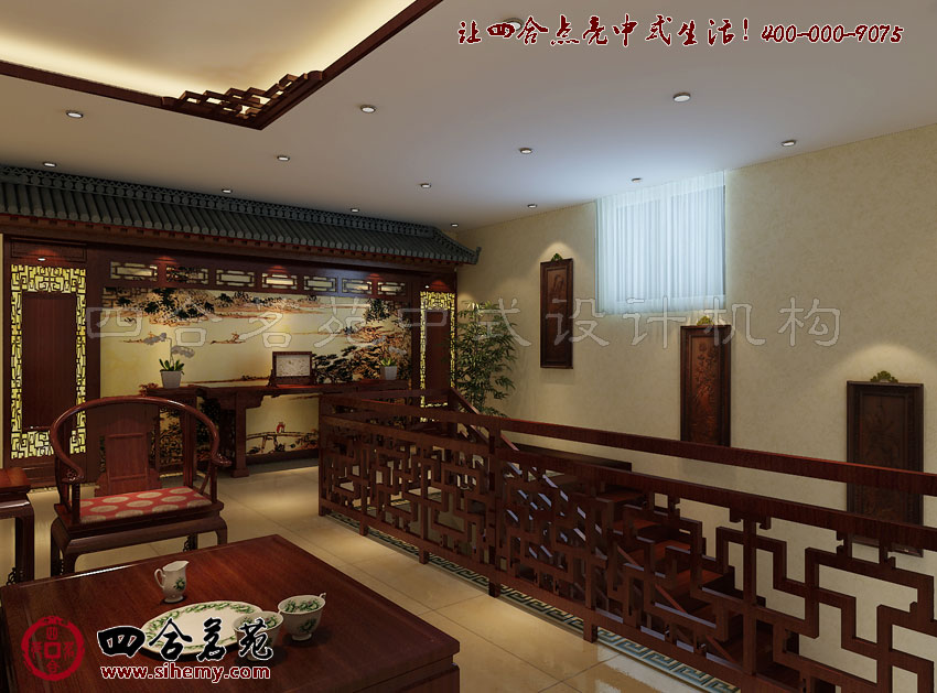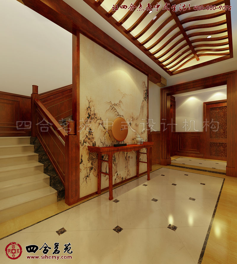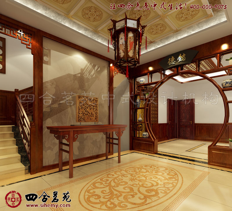 稟賦傳統(tǒng),依托現(xiàn)代。中式豪宅別墅設(shè)計樓梯構(gòu)成經(jīng)典別墅設(shè)計空間,穿越時光超脫時間束縛的經(jīng)典配飾,總是讓人們真實感知古典藝術(shù)的真相。這與四合茗苑的設(shè)計立意相符,此案營造經(jīng)典藝術(shù)效果給人品味無尚的魅力。