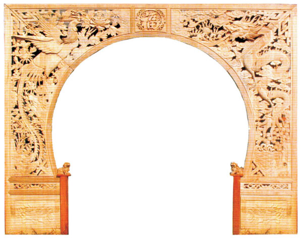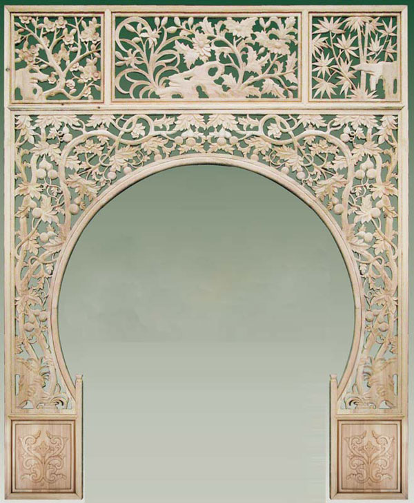 中式裝修風(fēng)格的產(chǎn)品,位于門洞位置,起裝飾作用的部件,分木條榫接工藝和立體雕刻工藝