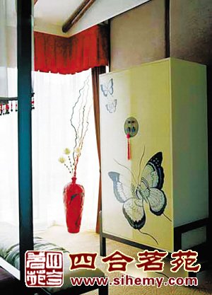 中式空間有時(shí)候難免穩(wěn)重有余而輕松不足。光線的攝入量可以在一定程度上緩解空間的壓迫感,較為寬闊的采光設(shè)置將大量自然光引入室內(nèi),可適當(dāng)減輕中式元素本身帶有的年齡感。顏色:如木色與紅白黑的組合,或在空間里加入描摹工筆畫的手繪家具,例如畫著水墨蝴蝶的衣柜;而材質(zhì):如傳統(tǒng)木質(zhì)與其他現(xiàn)代材質(zhì)的新搭配,不僅可以使得空間充滿東方韻味,也散發(fā)著較為年輕、時(shí)髦的氣息。
