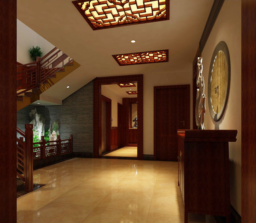 古典中式風(fēng)格獨(dú)棟別墅門(mén)廳裝飾設(shè)計(jì)