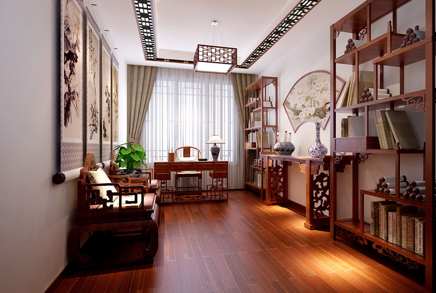 新古典中式書(shū)房裝修效果圖鑒賞