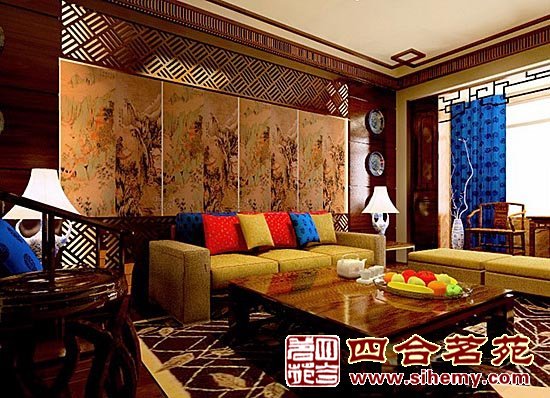 中式裝修風(fēng)格,清雅的墨香飄浮在室內(nèi)的每個角落,給主人營造了靜心雅致的創(chuàng)作空間,一個空靈簡約的思考空間。客廳的壁畫與古典家具,室內(nèi)的書法掛件,書房里更多的作品隨意地堆放在條幾上,卷插在缸筒里" />