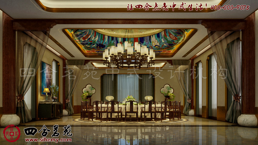華貴大氣的天花板起伏有序,光可鑒人的瓷磚反射著明黃和暖的光線,渲染得整個(gè)室內(nèi)金碧輝煌。古樸的經(jīng)典中式家居陳列其間,貴氣里又彌漫著濃郁的古典文化氛圍。