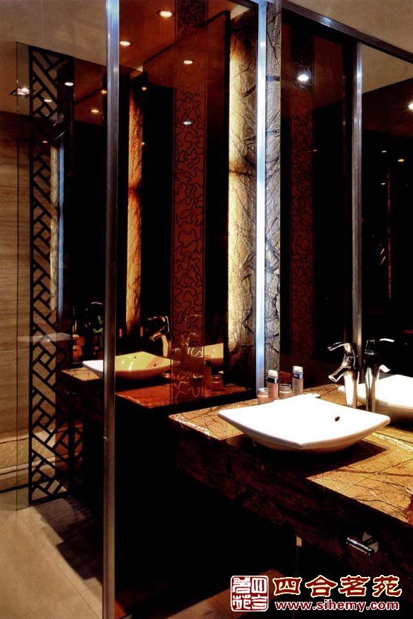 臺燈、床頭的花格、紗簾、窗外的景色互相掩映