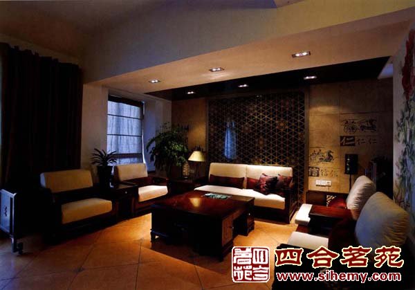 牡丹花沙發(fā)背景墻作為整個(gè)客廳的亮點(diǎn)