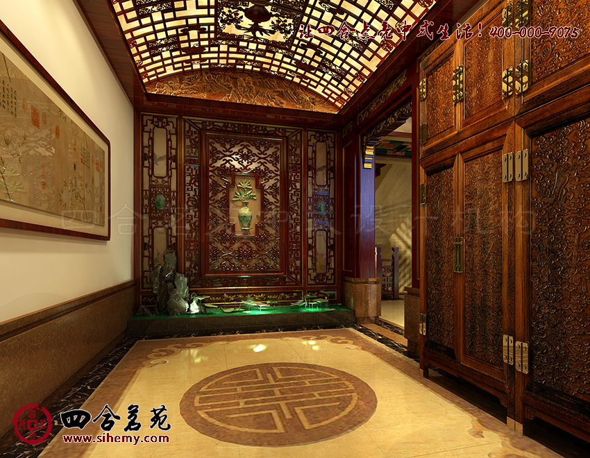 裝飾題材造型上配合不同光線渲染,給人艷麗、綽約、穩(wěn)重的古樸韻味。