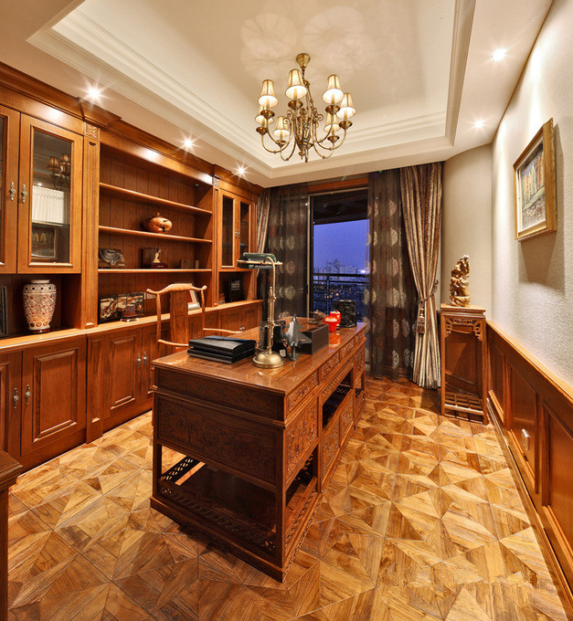 別墅裝修要想建設出中式別墅設計風格,那么主要就要遵循一個原則,就是要有中國古典的文藝韻味。很多別墅裝修設計公司在別墅設計的過程中,都會選擇將古典文化的元素與現(xiàn)代化的地板完美的融合在一起,圖一就完美的詮釋了這個道理。