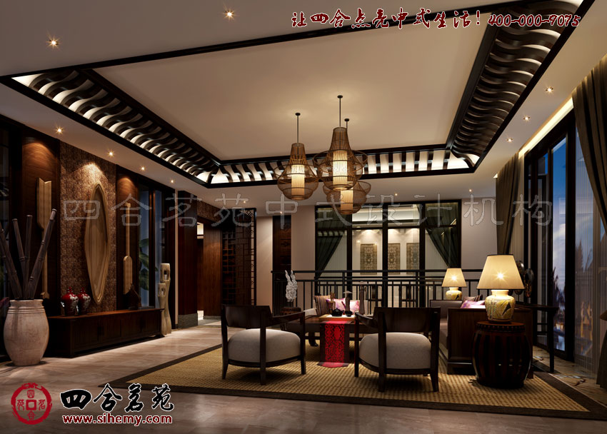 別墅設(shè)計(jì)裝飾以時(shí)間為軸,最新別墅設(shè)計(jì)以空間為序,不斷變化的空間中運(yùn)用中式元素在空間中產(chǎn)生流動(dòng)而連貫的主題設(shè)計(jì)感。