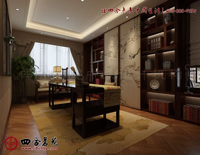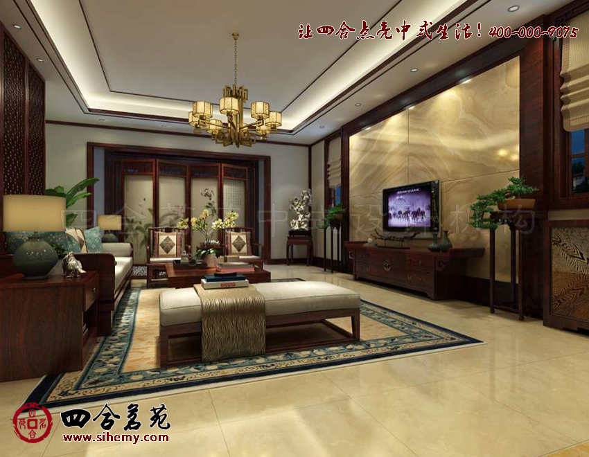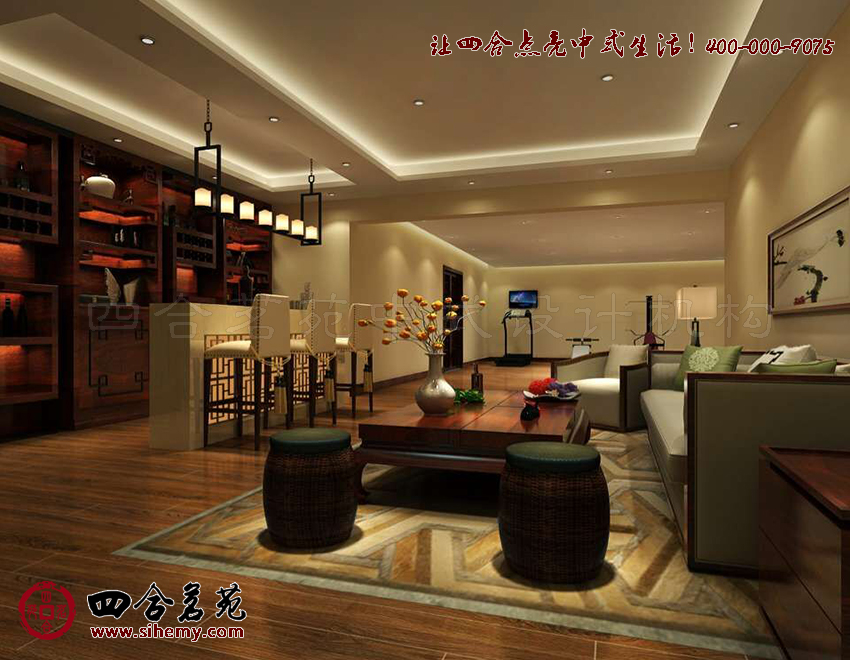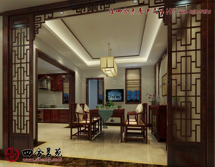 疏朗洗練,線條色彩流暢明快。線條與幾何圖形的組合變化,室內(nèi)中式裝飾設(shè)計(jì)與配飾軟裝語匯成題