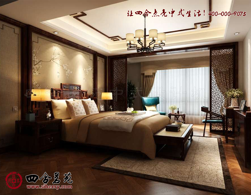 空間裝飾筆觸洗練,造型古樸,色彩淡雅,裝飾從視覺上讓人體驗(yàn)一份源自中式設(shè)計(jì)的溫馨體驗(yàn)。