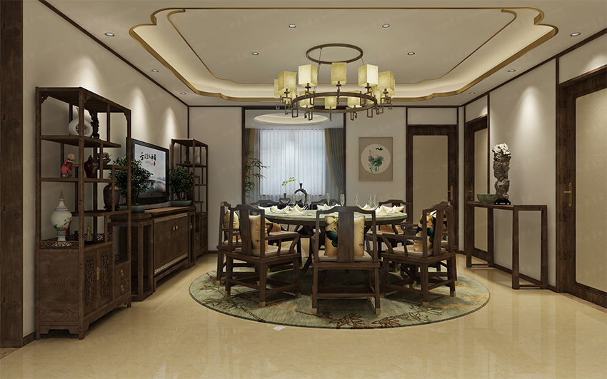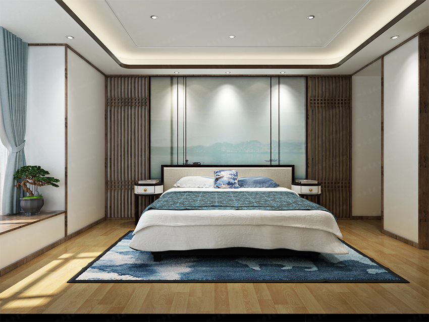 水墨畫的背景,寧靜而高雅,簡潔的線條、高雅的裝飾,材質(zhì)與肌理的協(xié)調(diào)關(guān)系,讓空間舒服而優(yōu)雅。陽光透過窗欞,變得輕柔而溫婉,營造出怡情養(yǎng)心的居室環(huán)境。
