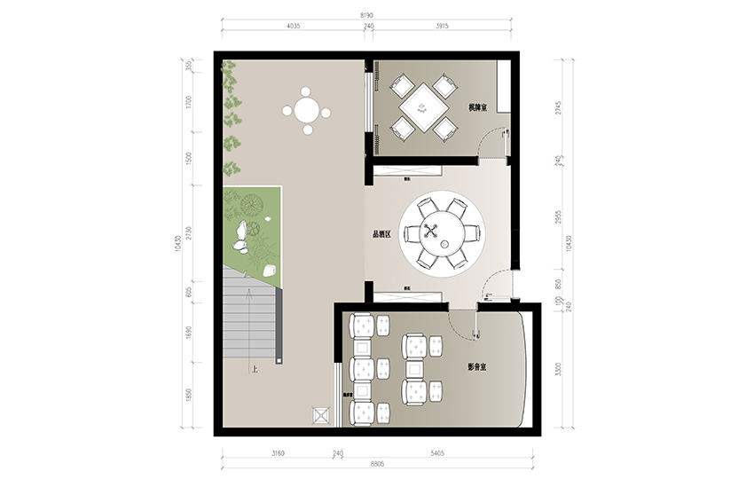 從整體布局可以看出,空間的性質(zhì)追求沉穩(wěn)大氣,又不乏隨性自由之感,對稱的格局,動靜分離的區(qū)域,正如空間與人的關(guān)系,融洽和諧共處。從“自在由心”的角度去認(rèn)知世界并享受世界。