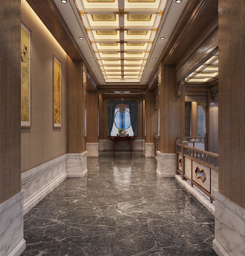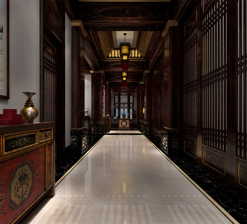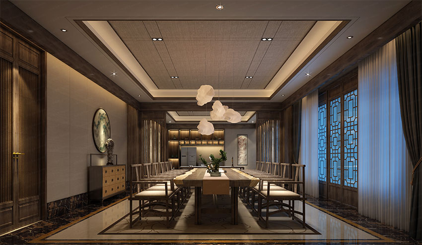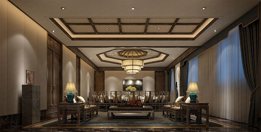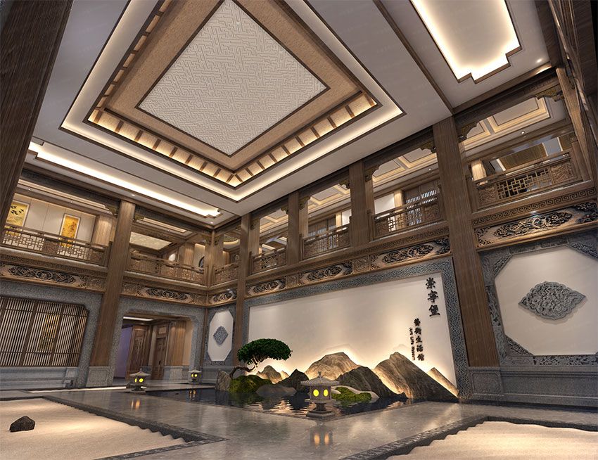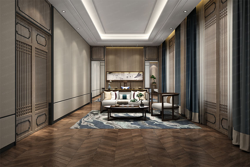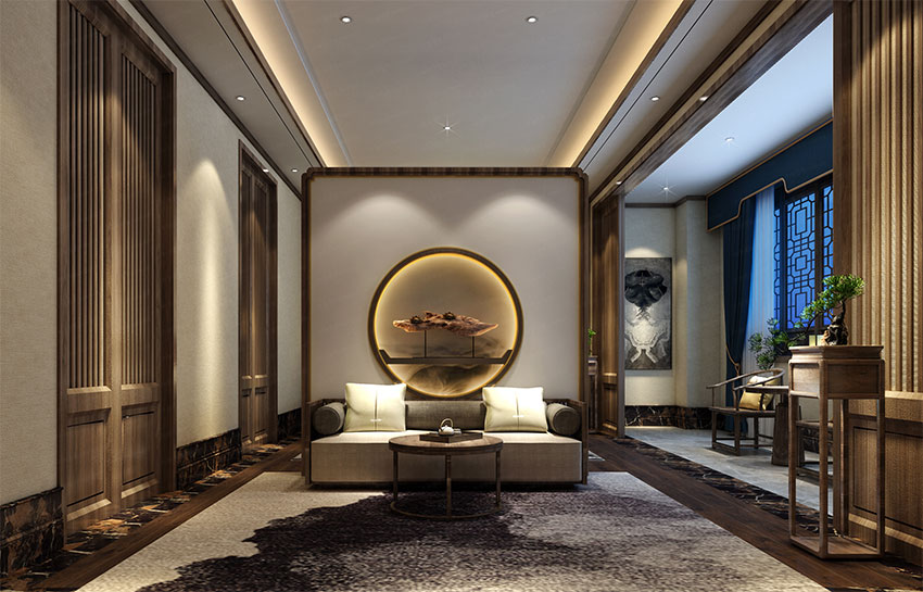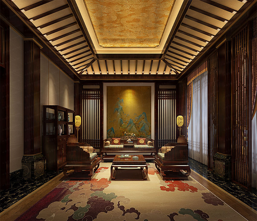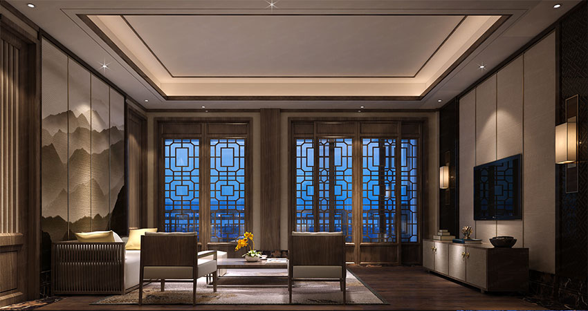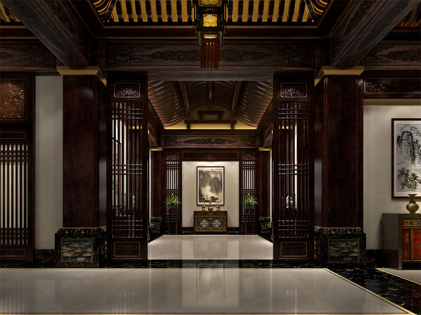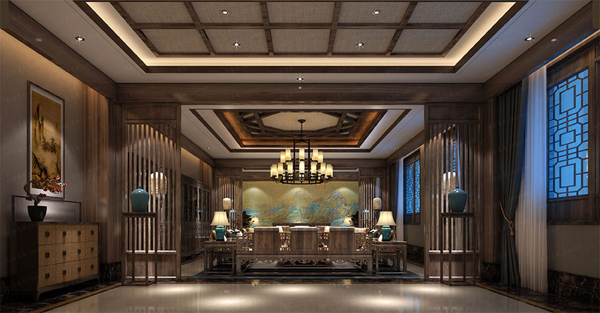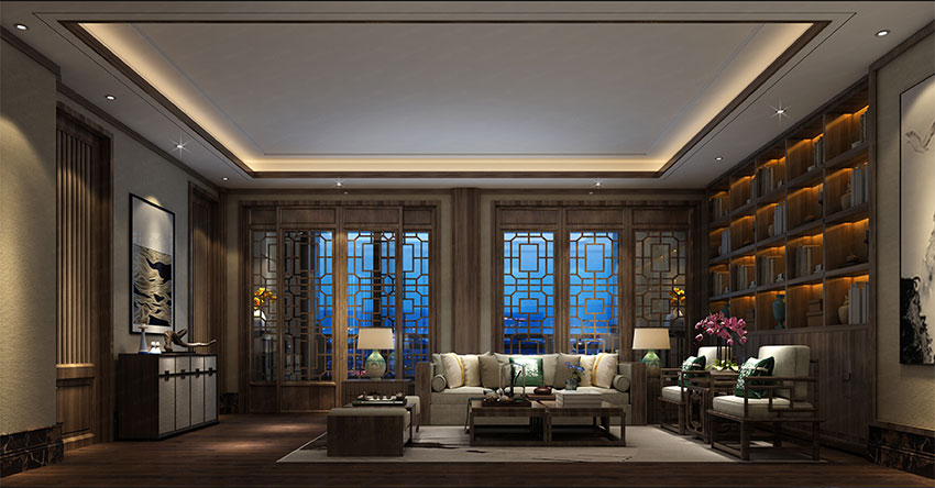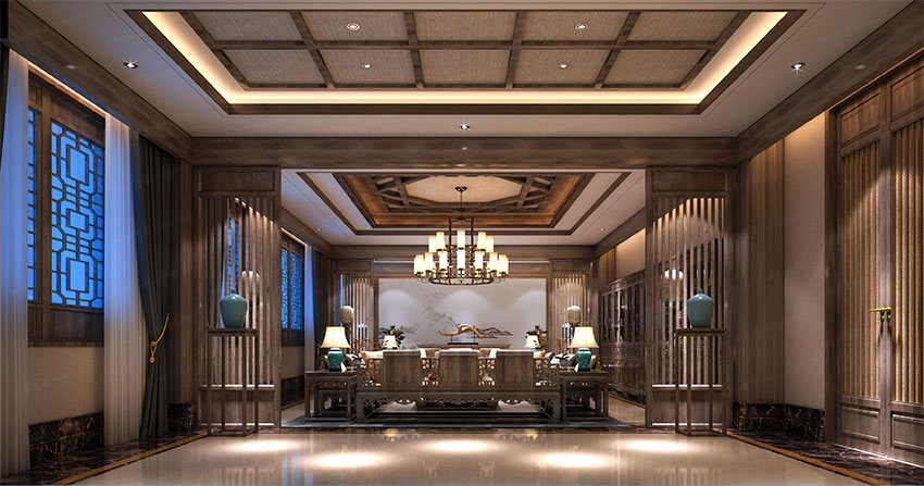 本案中式裝修別墅以情感為核心,物我統(tǒng)一,建立一種人與環(huán)境和諧共融的美妙境界,讓情感成為中介,將主體的人與客體的空間合規(guī)一道,使人感受到來自傳統(tǒng)文化的無限魅力。