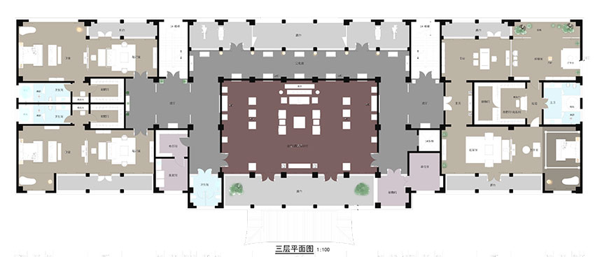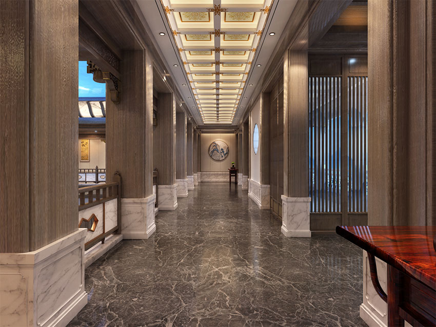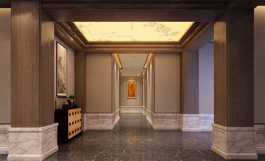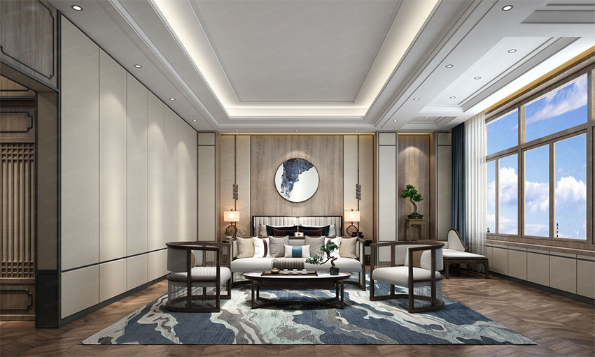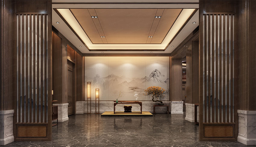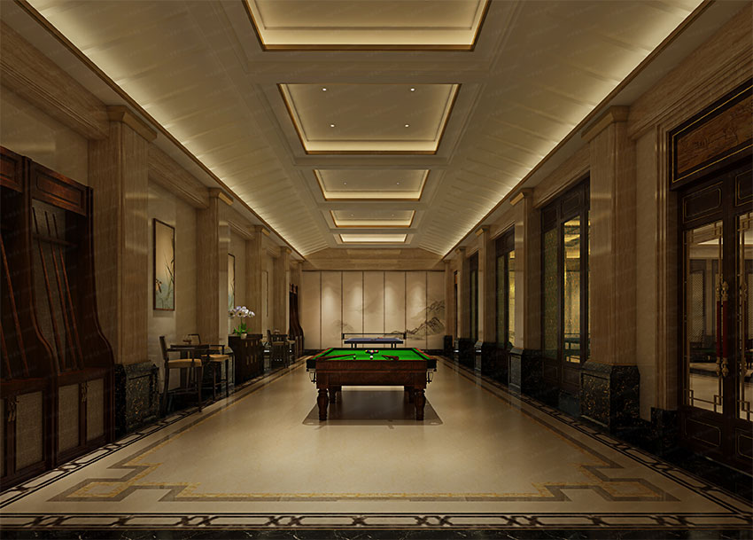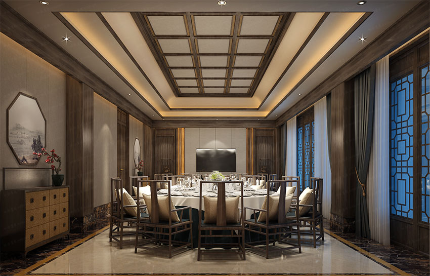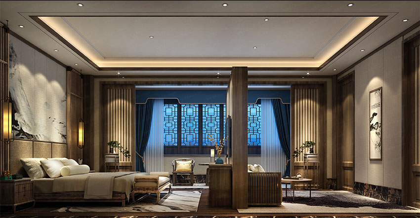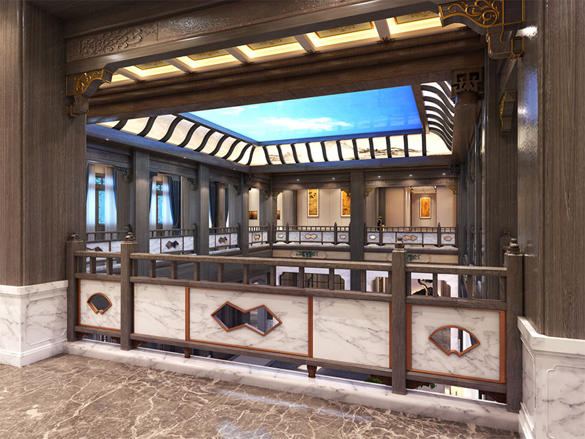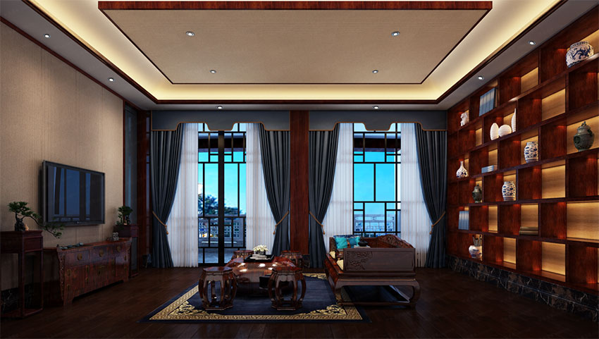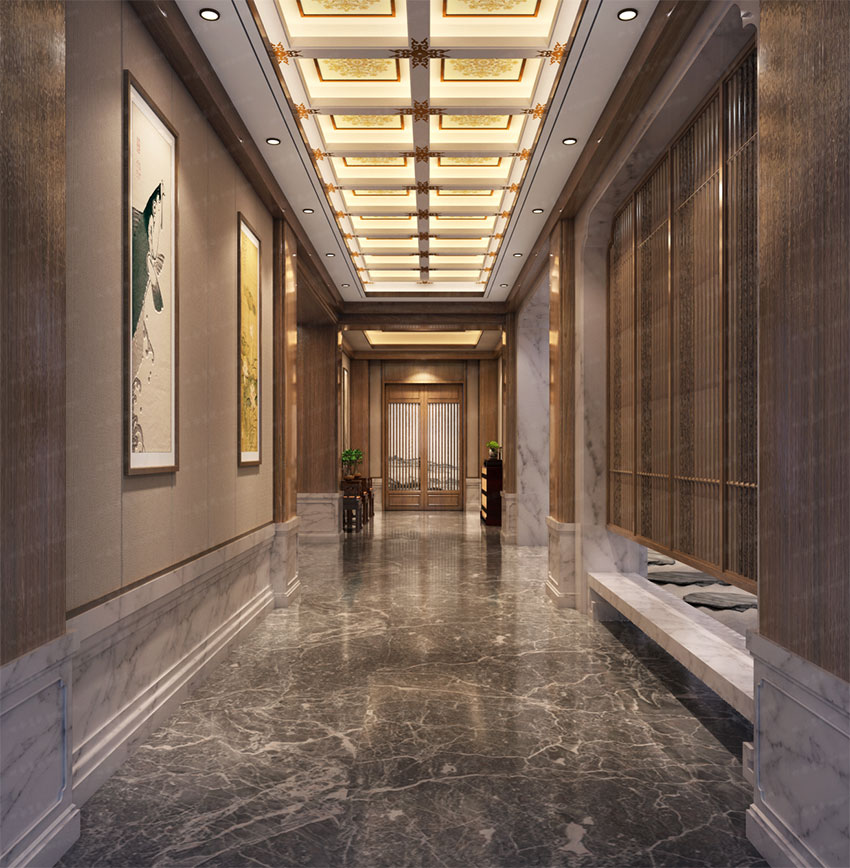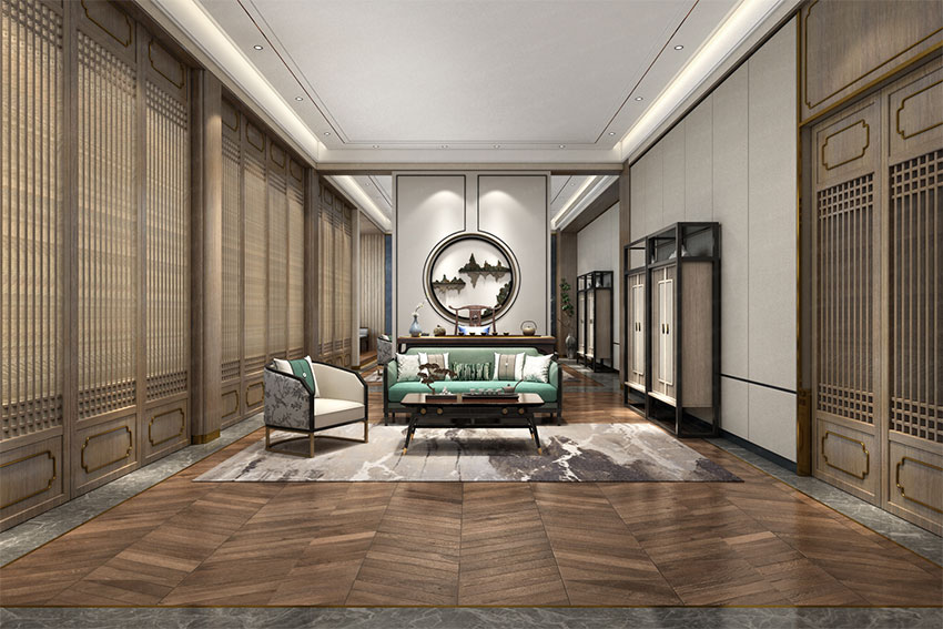 本案中式裝修別墅以情感為核心,物我統(tǒng)一,建立一種人與環(huán)境和諧共融的美妙境界,讓情感成為中介,將主體的人與客體的空間合規(guī)一道,使人感受到來自傳統(tǒng)文化的無限魅力。