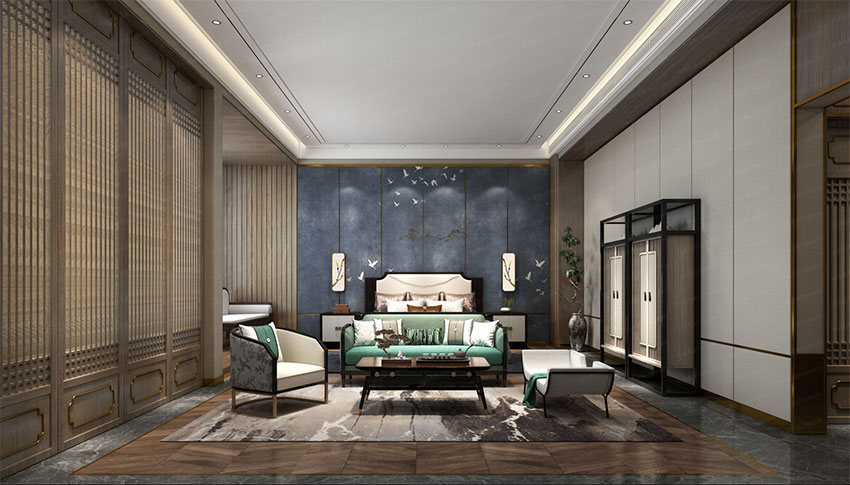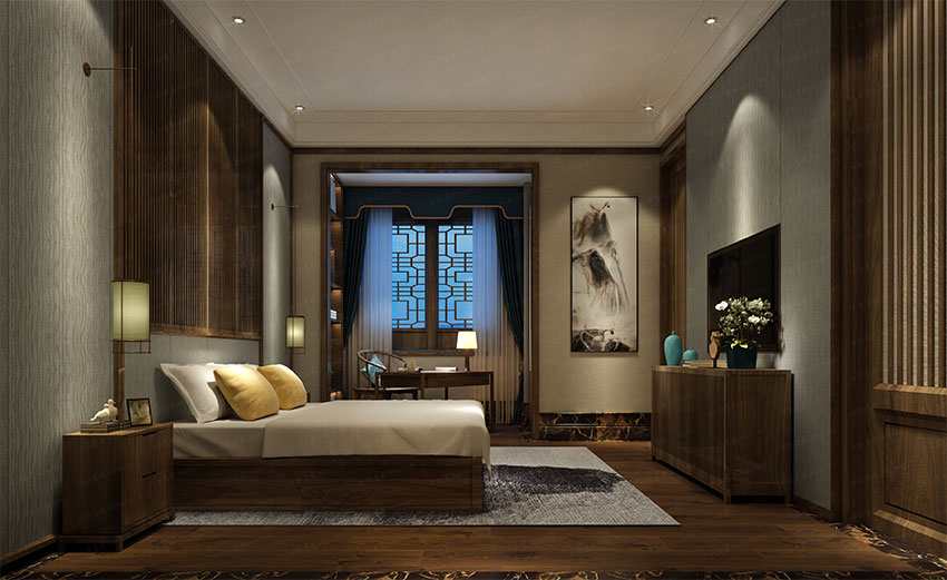 老人房穩(wěn)重大氣,裝飾有層次,風(fēng)格整體統(tǒng)一。設(shè)計(jì)注重造型比例和內(nèi)容豐富性,軟裝和硬裝之間高級(jí)平衡,以此良好把控整體裝飾美學(xué)品質(zhì)。