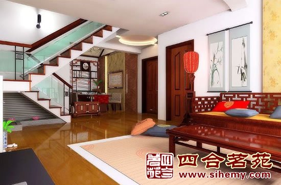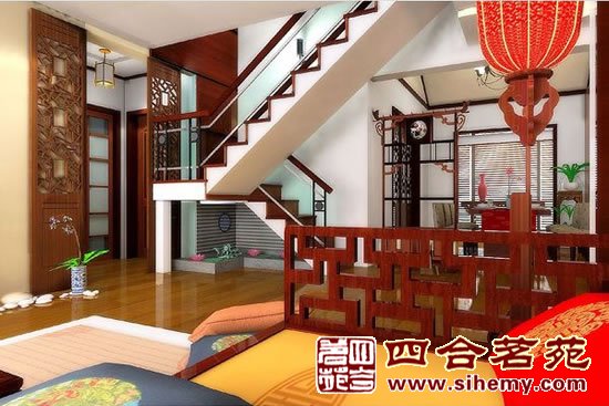 現(xiàn)代簡約中式風(fēng)格家居裝修-樓梯處效果