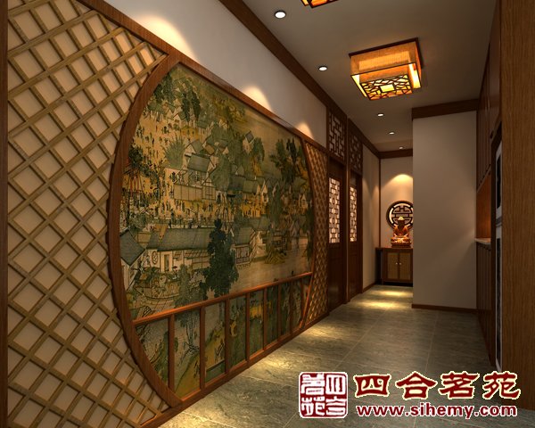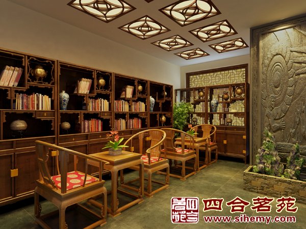 本案主要以兩條主線展開設(shè)計(jì)。一是傳統(tǒng)中式意蘊(yùn),室內(nèi)整體設(shè)計(jì)風(fēng)格以古樸典雅為主色調(diào),傳統(tǒng)的家具配飾,假山流水,書法字畫,置身其中仿佛暢游在中式庭院的悠閑之中,自然地會被這里的一幅字畫,一扇屏風(fēng)所吸引。中國風(fēng)格給了我們無法抗拒的誘惑。