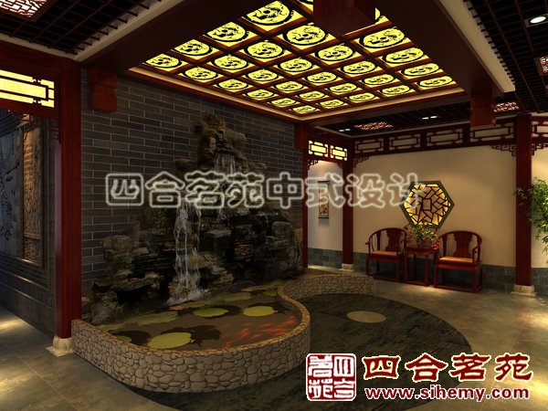 固守傳統(tǒng)弘揚(yáng)國學(xué),國醫(yī)館是一家專業(yè)從事中醫(yī)養(yǎng)生推拿針灸等傳統(tǒng)醫(yī)療機(jī)構(gòu),所以設(shè)計(jì)師在做設(shè)計(jì)時(shí)考慮的是中國傳統(tǒng)文化易經(jīng)中的中的陰陽太極養(yǎng)生的元素,結(jié)合中國傳統(tǒng)建筑、園林、繪畫、雕塑等傳統(tǒng)藝術(shù)形式,以傳統(tǒng)文化為切入點(diǎn)把文化藝術(shù)有機(jī)的融入了室內(nèi)設(shè)計(jì)中,鑄造了一個(gè)傳統(tǒng)文化藝術(shù)、醫(yī)療的展覽館。