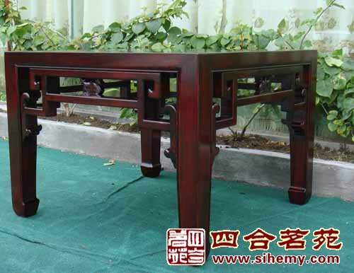 茶幾—般以方形或長(zhǎng)方形居多,高度與扶手椅的扶手相當(dāng)用以放杯盤茶具,故名。它是由明代的長(zhǎng)方形香幾演變來(lái)的,傳世的大量實(shí)物中,多為紅木、花梨木制品,未見(jiàn)有年代較早的。顯然,茶幾是一種清式家具。—般 來(lái)講,茶幾比香幾矮小,但玲瓏精致,有的做成兩層式,比較容易與香幾相區(qū)別。
