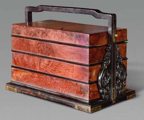 百寶箱也稱首飾箱(匣)內(nèi)有多層 ,做工精細,主要用存放珍貴的首 飾與與珠寶。