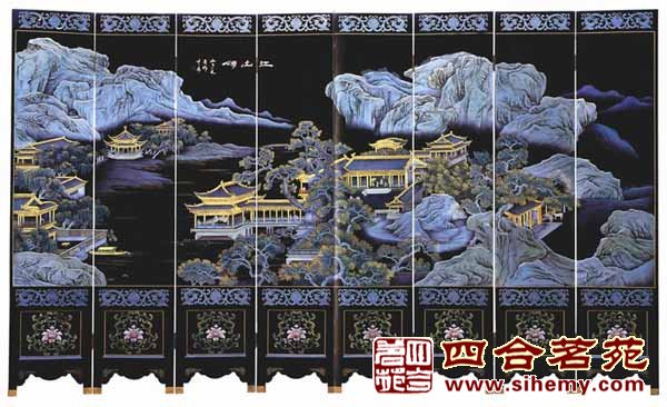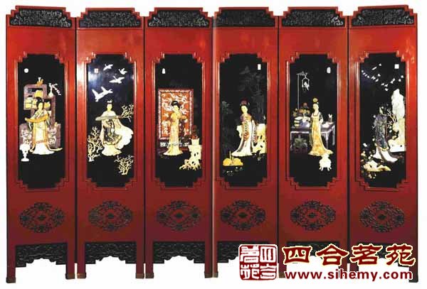 做工、手法多種多樣。由于紙絹難以流傳至今,所以現(xiàn)存明代傳世作品以木制和漆制為多,紙絹 制屏風(fēng)極為少見。—般說來,帶座屏風(fēng)較重,曲屏風(fēng)較輕。
